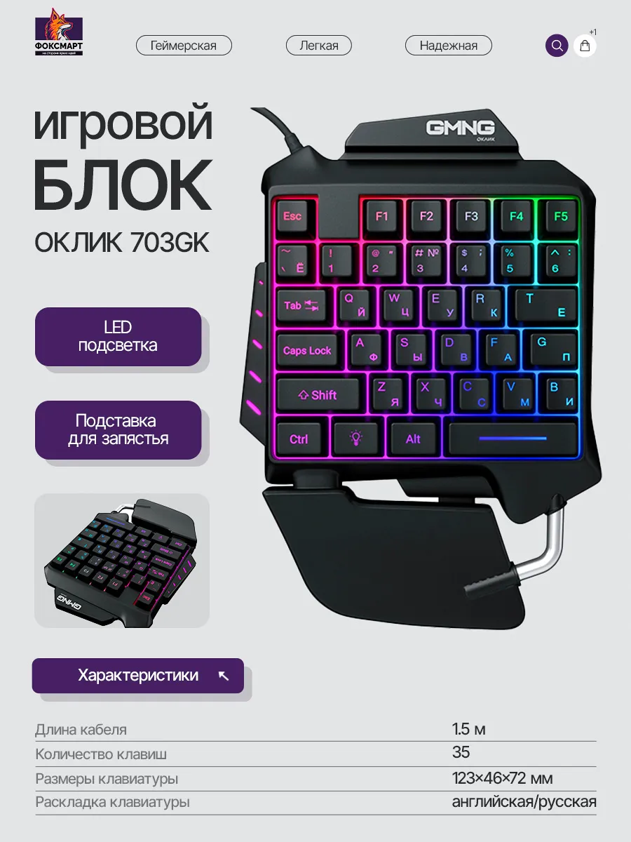 Игровой блок Oklick 703GK – это компактное и стильное устройство, специально разработанное для истинных геймеров.