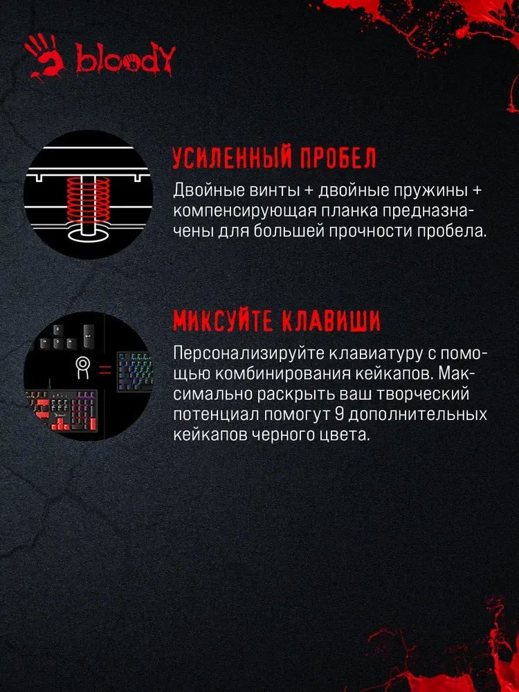 Механические свитчи Bloody BLMS Red Plus: Специальная настройка точки и силы срабатывания обеспечивает впечатляющие скорость и ощущения во время игры!