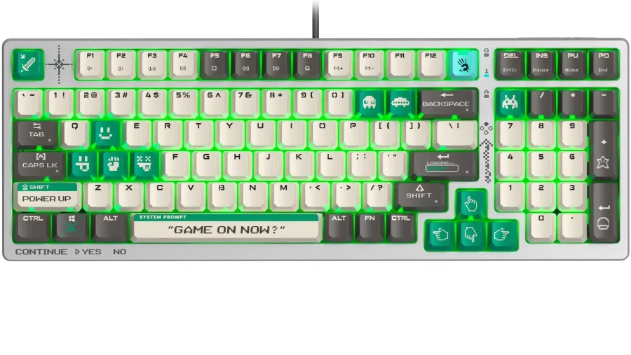 Клавиатура проводная A4Tech Bloody S98 обладает кейкапами основной игровой зоны клавиатуры, которые изготовлены из PBT-материала (полибутилентерефталат), что увеличивает их долговечность. Кейкапы из PBT от Bloody имеют малый вес и быстро возвращаются в исходное положение во время игры. Выполненный из пластика корпус не подвержен появлению повреждений.