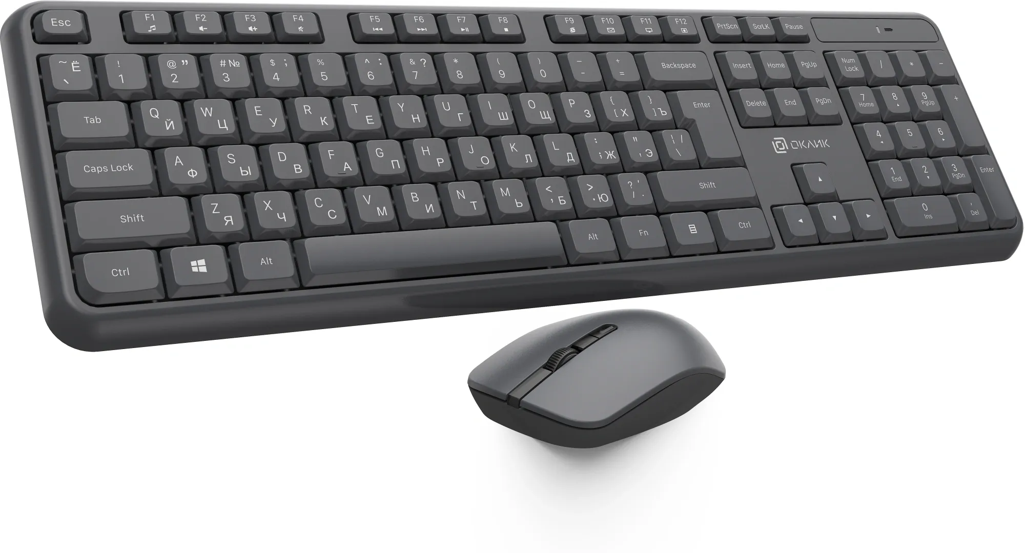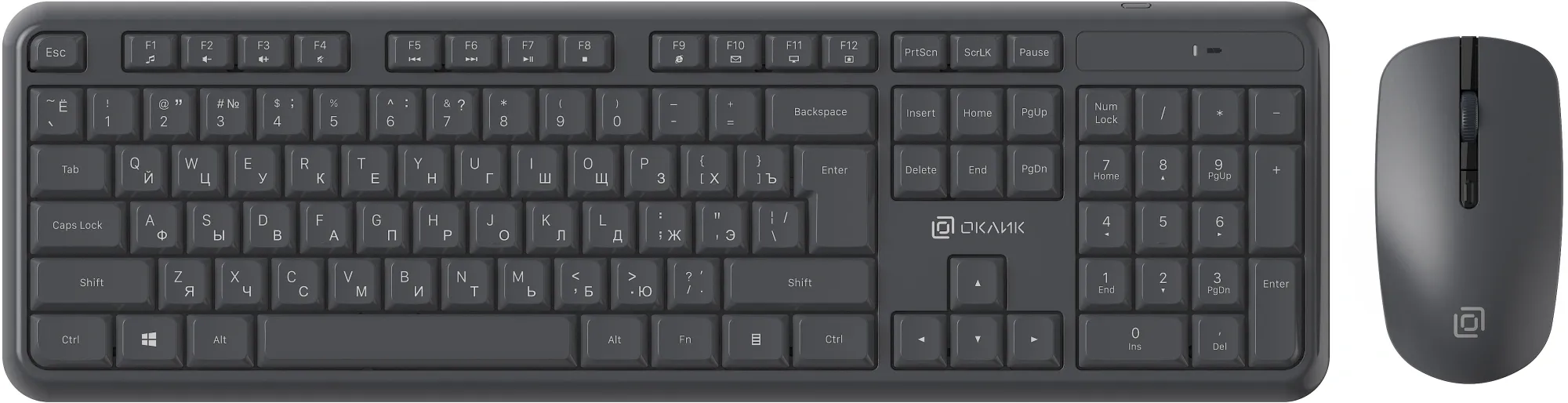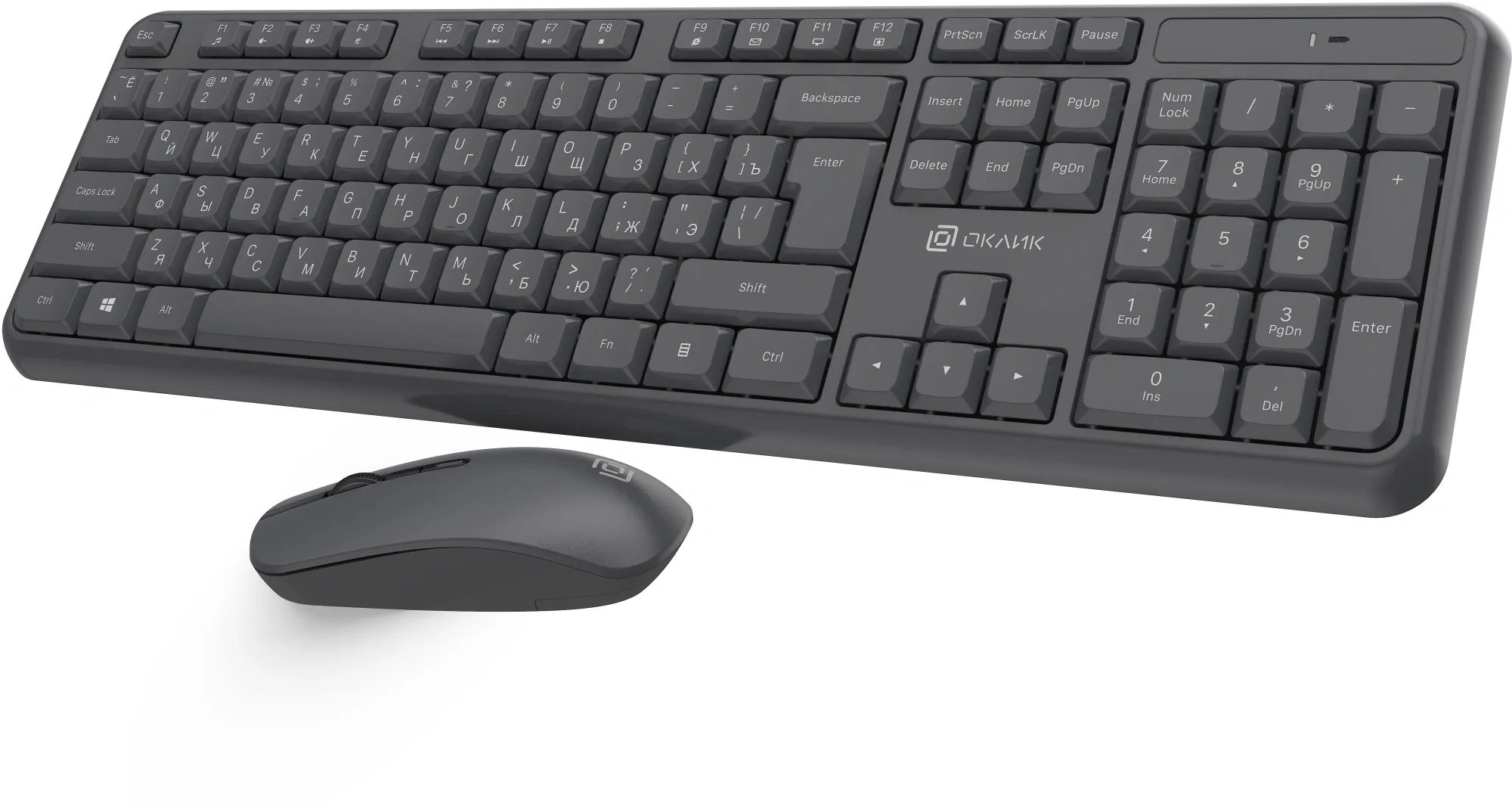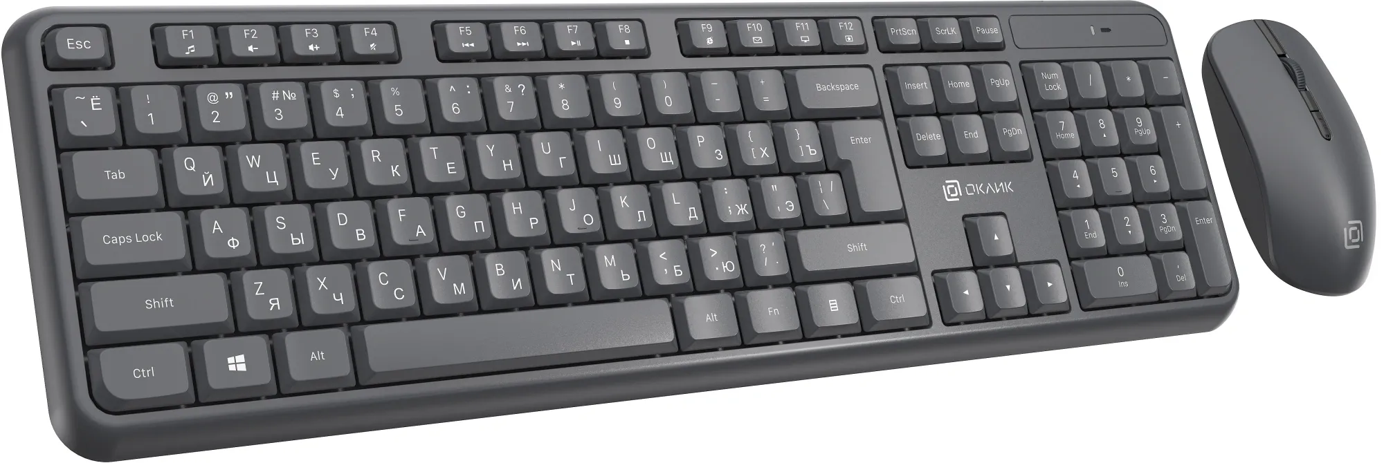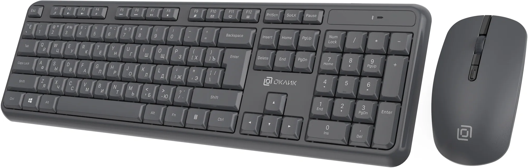 Клавиатура и мышь «Оклик» S277W — беспроводной комплект с абсолютно бесшумными клавишами и приятным нажатием. Клавиатура устойчива, имеет массивный пластиковый корпус без люфтов и зазоров, имеет выдвижные ножки для регулировки угла наклона и высокий ресурс клавиш. Мышь оснащена 4 клавишами, низкой посадкой и приятным софт-тач пластиком. Клавиатура поддерживает мультимедийный функционал клавиш F1 - F12. Комплект подходит для работы на покрытиях любой поверхности, имеет радиус действия 10 м. В комплекте есть защита от попадания жидкостей.