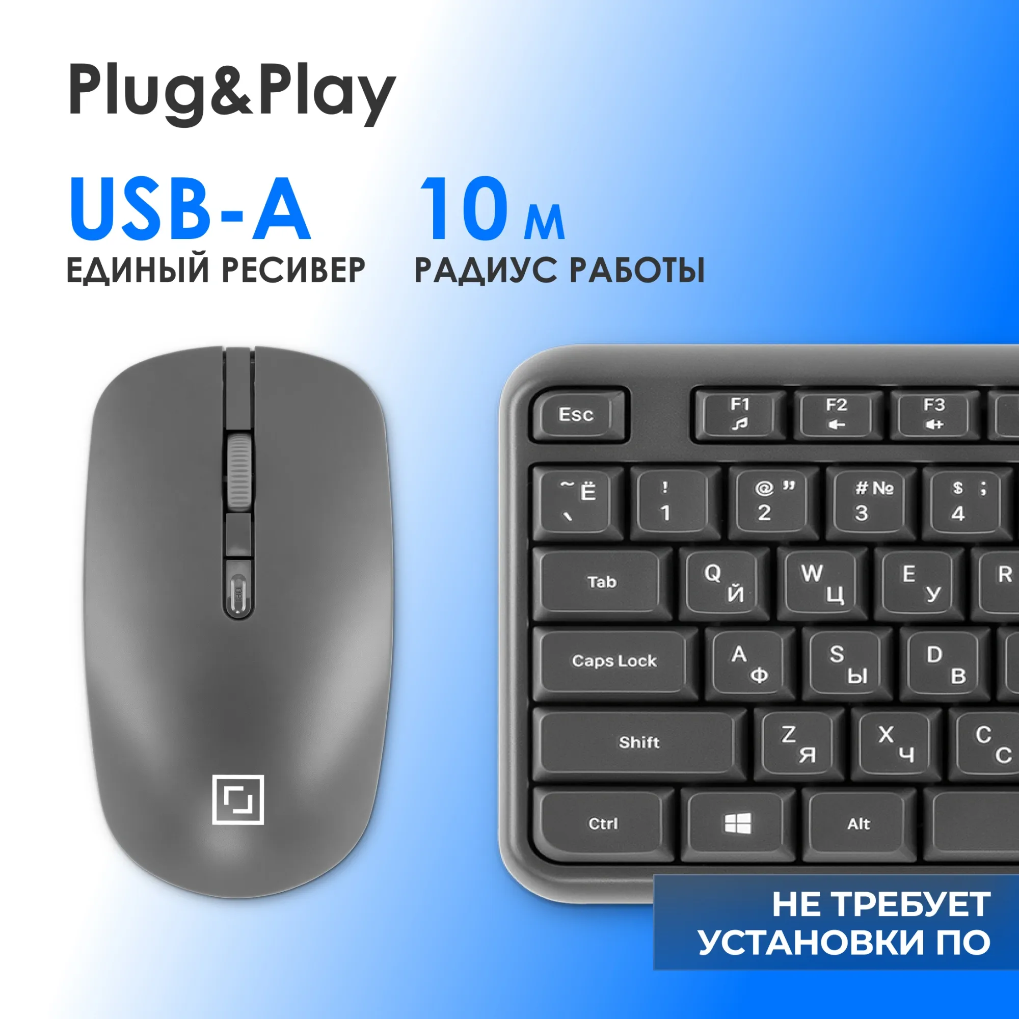 Клавиатура - 1 шт., мышь - 1 шт., ресивер - 1 шт., батарейки, руководство пользователя