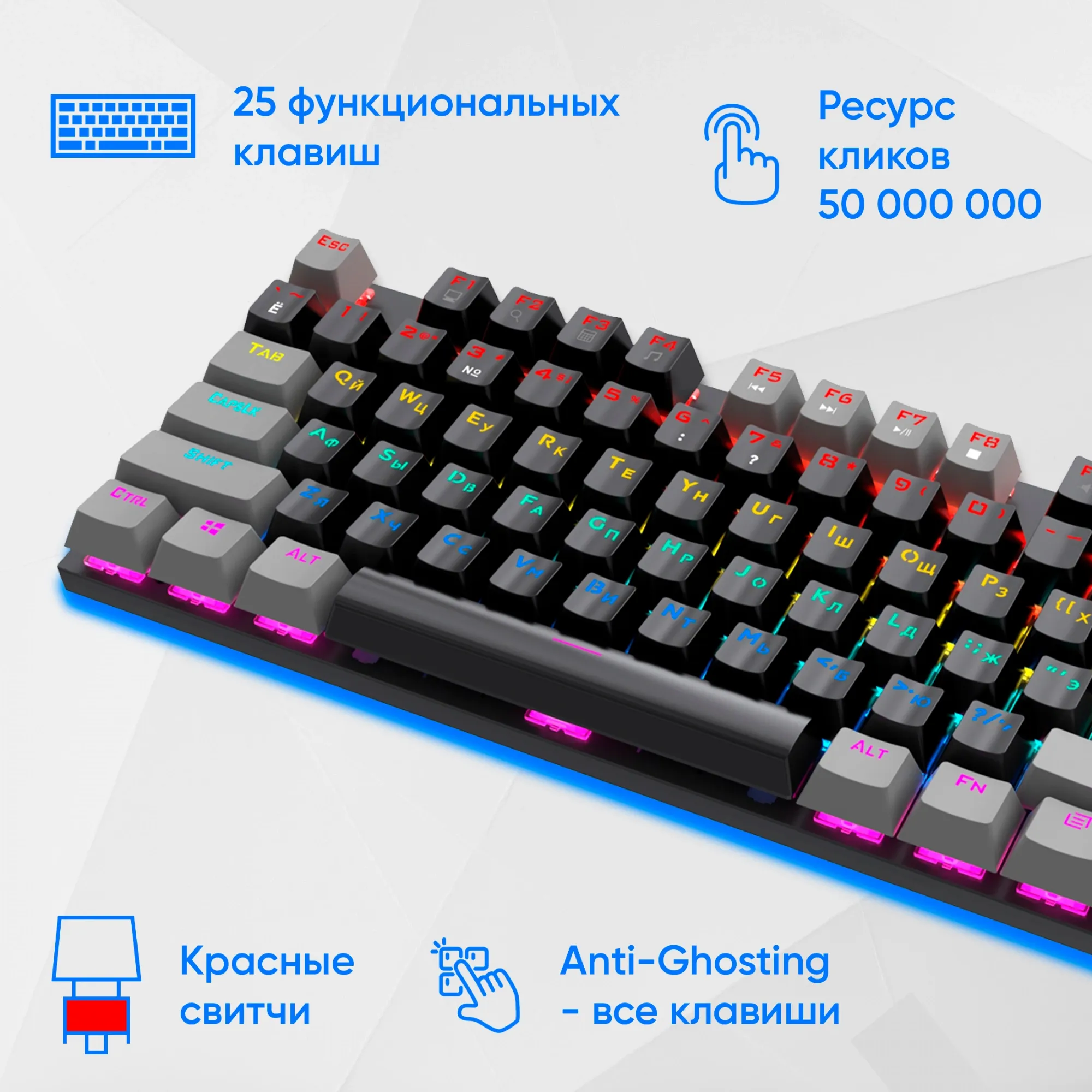 Механическая клавиатура K600X USB Multimedia for gamer LED от OKLIK — это идеальный выбор для геймеров, ценящих скорость, точность и стиль. Эта компактная 87-клавишная клавиатура с английской/русской раскладкой оснащена переключателями Red Switch, обеспечивающими быстрый отклик и плавный ход клавиш, что позволяет вам мгновенно реагировать на действия в игре. Яркая RGB-подсветка создает захватывающую атмосферу во время игрового процесса, а система Hot Swap позволяет легко заменить переключатели, настраивая клавиатуру под свои предпочтения. Прочный корпус и эргономичный дизайн обеспечивают комфорт во время длительных игровых сессий. Подключение к ПК осуществляется через USB-интерфейс с кабелем длиной 180 см, что обеспечивает свободу движений. Клавиатура K600X станет незаменимым инструментом для геймеров, стремящихся к победе.