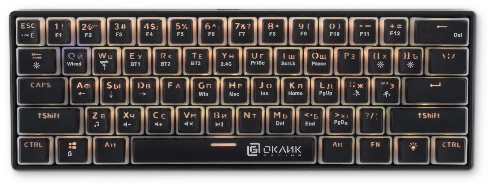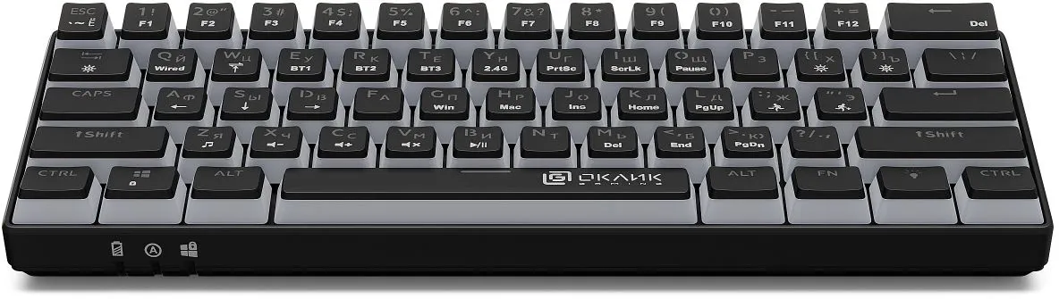 Клавиатура Oklick K763W – идеальное решение для тех, кто ценит комфорт и удобство во время игровых сессий. Эта клавиатура обладает преимуществами, которые делают ее незаменимым аксессуаром для каждого игрока. Особенность клавиатуры Oklick K763W – типы беспроводного соединения. Устройство поддерживает как Bluetooth, так и радиоканал, что позволяет использовать ее с различными устройствами без лишних проводов и ограничений. Радиус действия клавиатуры составляет 10 метров, что даёт игроку свободу движения. Клавиатура оснащена собственным Li-ion аккумулятором. Ресурс нажатий клавиатуры K763W достигает до 20 миллионов нажатий, поэтому будьте уверены в надежности и долговечности этого устройства. Дизайн клавиатуры выполнен в стильном черном цвете с прозрачными буквами и цветной подсветкой. Это не только делает клавиатуру эстетичной, но и позволяет комфортно играть даже в условиях недостаточного освещения.