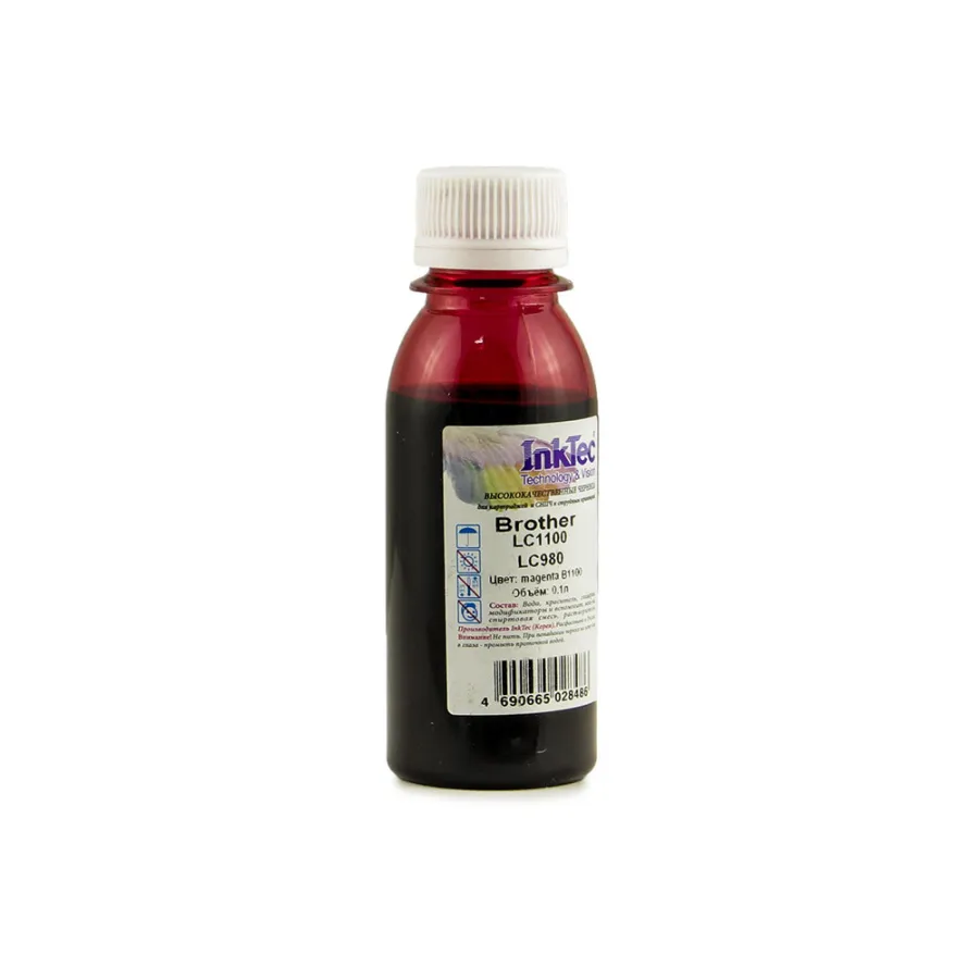 Пурпурные чернила InkTec B1100 предназначены для использования в картриджах Brother LC1100 и LC980. Объём флакона составляет 0,1 литра. Эти чернила являются водорастворимыми и совместимы с принтерами Brother серий: 510W, 710W. DCP 145C, DCP 165C, DCP 185C, DCP 195C, DCP 197C, DCP 365CN, DCP 375CW, DCP 385C, DCP 395CN, DCP 535CN, DCP 585CW, DCP 6690CW, DCP J100, DCP J105, DCP J125, DCP J132W, DCP J140W, DCP J152W, DCP J172W, DCP J315W, DCP J4110DW, DCP J515W, DCP J552DW, DCP J715W, DCP J752DW, DCP T300, DCP T500W, DCP T700W, DCPT310. MFC 250C, MFC 255CW, MFC 257CW, MFC 290C, MFC 295CN, MFC 490CN, MFC 490CW, MFC 495CW, MFC 5490CN, MFC 5890CN, MFC 5895CW, MFC 6490CN, MFC 6490CW, MFC 670CD, MFC 670CDW, MFC 6890CDW, MFC 790CW, MFC 795CW, MFC 930CDN, MFC 930CDWN, MFC 990CW, MFC J200, MFC J220, MFC J245, MFC J265W, MFC J270W, MFC J410, MFC J410W, MFC J415W, MFC J430W, MFC J4310DW, MFC J432W, MFC J4410DW, MFC J450DW, MFC J4510DW, MFC J4610DW, MFC J4710DW, MFC J525W, MFC J5910DW, MFC J615W, MFC J625DW, MFC J630W.