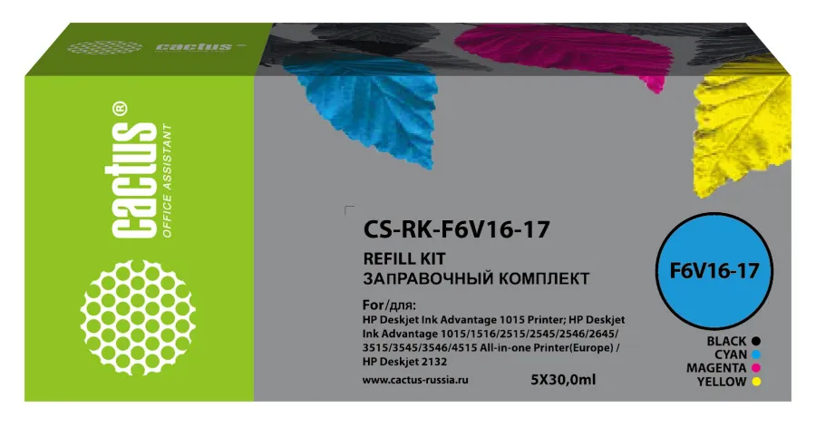 Заправочный набор Cactus CS-RK-F6V16-17 многоцветный набор 5x30мл создан для перезаправки картриджей, которые израсходовали свой заводской ресурс. Этот набор — идеальный выбор для поддержания стабильного качества печати и продления срока службы принтера. Набор обеспечивает высококачественную печать, делая каждый документ чётким и легко читаемым. Объём чернил гарантирует длительную и бесперебойную работу принтера, минимизируя необходимость частой замены картриджей. Чернила высокой чистоты обеспечивают чёткость текста и глубину цвета. Простой и удобный процесс заправки позволяет легко поддерживать работоспособность принтера без посещения сервисных центров. Выбирая заправочный набор, вы выбираете качество и удобство. Совместим с устройствами: HP OfficeJet 5232 All in One, 2130 All in One, 2132 All in One, 2134 All in One, 2620 All in One, 2630 All in One, 3630 All in One, 3631 All in One, 3632 All in One, 3633 All in One, 3634 All in One, 3635 All in One, 3636 All in One, 3637 All in One, 3638 All in One, 3639 All in On, HP ENVY 4513 All-in-On, HP OfficeJet 4650 All in One, 5220 All in One, 5230 All in One.