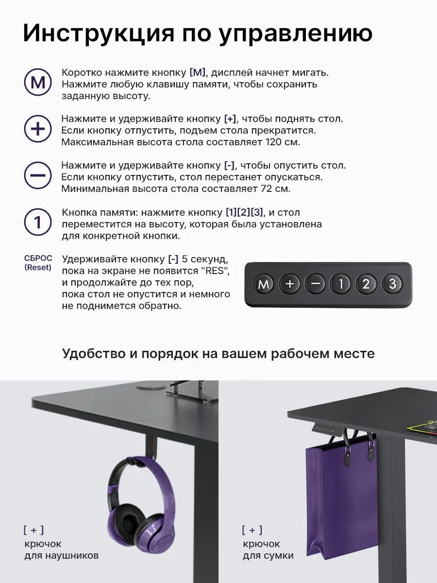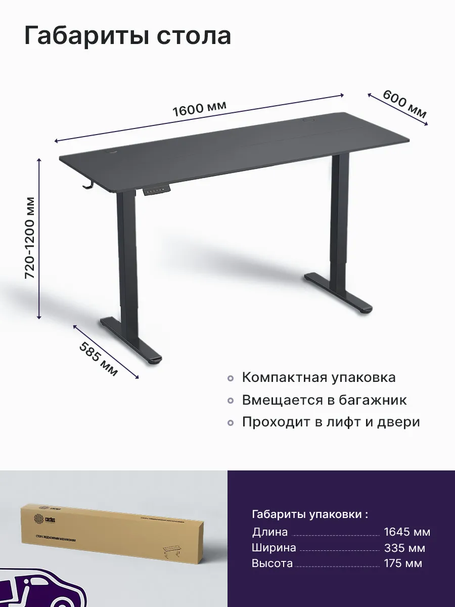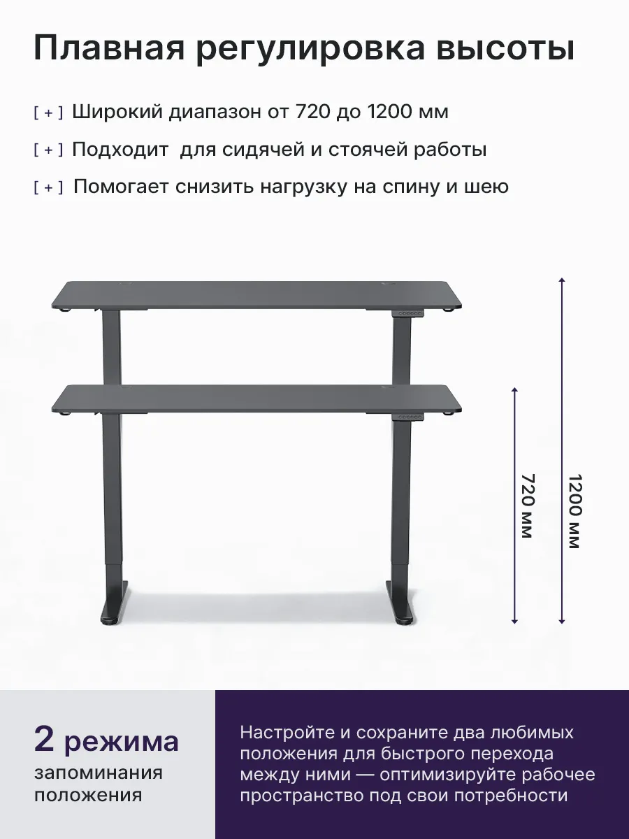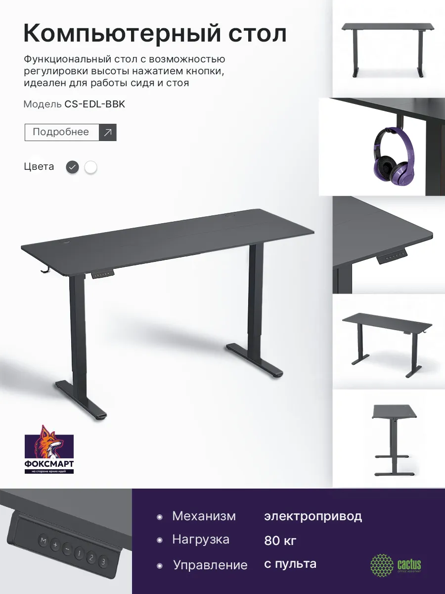 Стол для компьютера CS-EDL-BBK от CACTUS - это современное решение для комфортной работы и учебы. Этот стол оснащен электроприводом, позволяющим легко регулировать высоту столешницы, что обеспечивает эргономичное рабочее место и заботится о вашем здоровье. Прочная металлическая конструкция и столешница из ДСП гарантируют долговечность и надежность. Встроенный органайзер для проводов поможет поддерживать порядок на рабочем месте, а держатель для наушников всегда держит их под рукой. Стильный черный цвет стола гармонично впишется в любой интерьер, будь то офис или домашний кабинет. Стол поставляется в разобранном виде с подробной инструкцией и всеми необходимыми комплектующими для самостоятельной сборки.