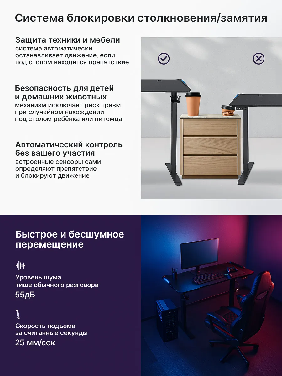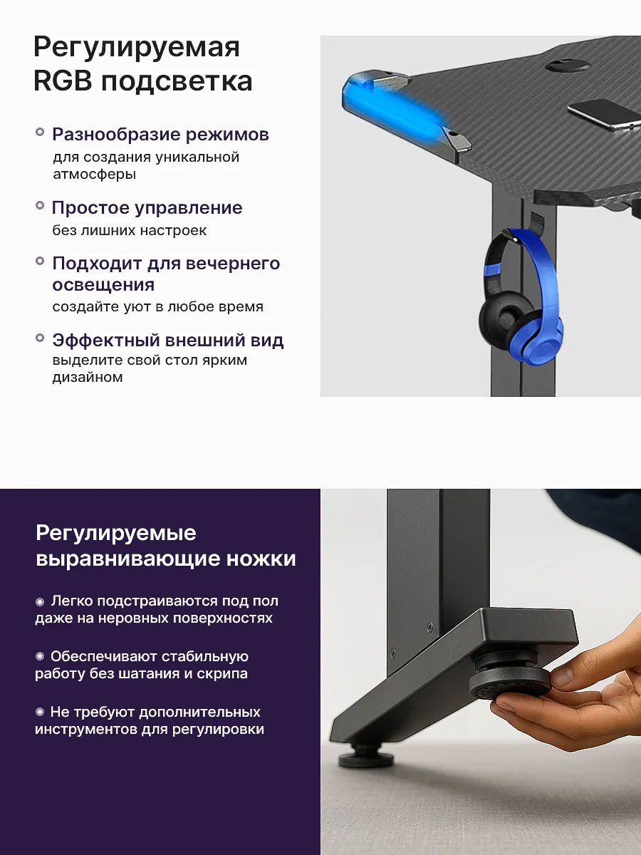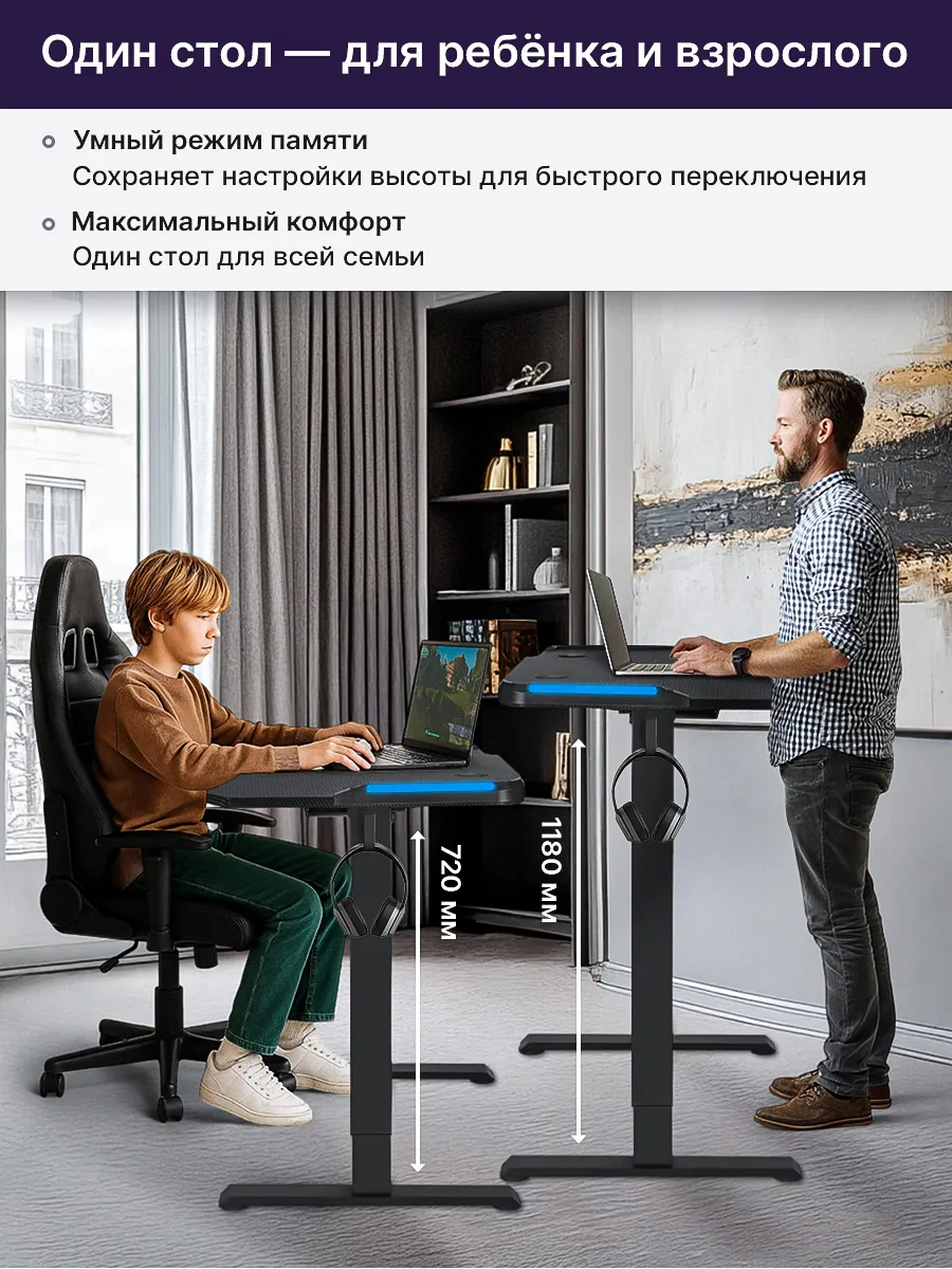 Стол для компьютера CS-EDL-GBK RGB с электроприводом от CACTUS – это стильное и функциональное решение для современного офиса или домашнего кабинета. Его прямоугольная столешница из прочного МДФ толщиной 18 мм предоставляет просторную рабочую поверхность, а регулируемая высота позволяет настроить стол под ваш рост и предпочтения. Встроенная RGB-подсветка создает уникальную атмосферу, а держатель для наушников поможет поддерживать порядок на рабочем месте. Металлические ножки обеспечивают устойчивость и надежность конструкции.