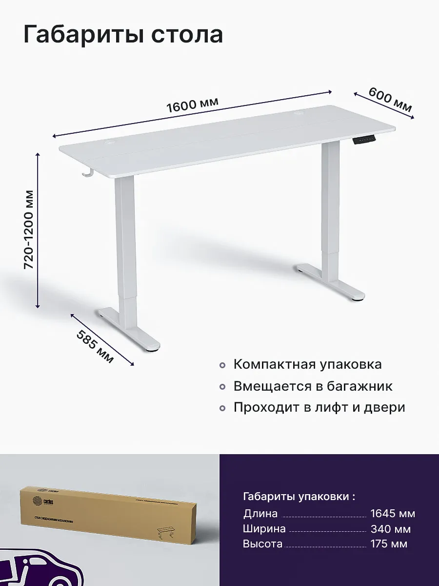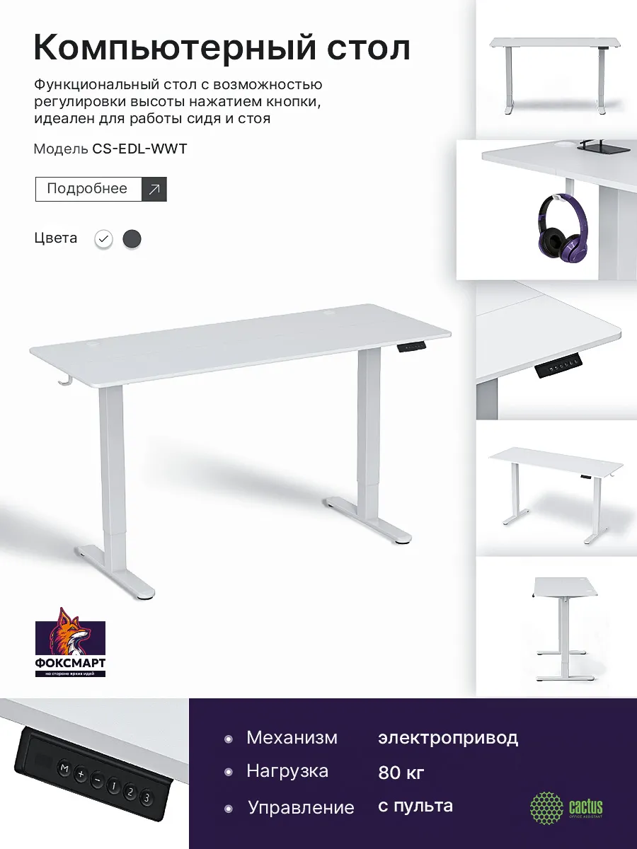 Стол для компьютера CS-EDL-WWT от CACTUS - это современное решение для комфортной работы и учебы. Этот стол оснащен электроприводом, позволяющим легко регулировать высоту столешницы, что обеспечивает эргономичное рабочее место и заботится о вашем здоровье. Прочная металлическая конструкция и столешница из ДСП гарантируют долговечность и надежность. Встроенный органайзер для проводов поможет поддерживать порядок на рабочем месте, а держатель для наушников всегда держит их под рукой. Стильный белый цвет стола гармонично впишется в любой интерьер, будь то офис или домашний кабинет. Стол поставляется в разобранном виде с подробной инструкцией и всеми необходимыми комплектующими для самостоятельной сборки.