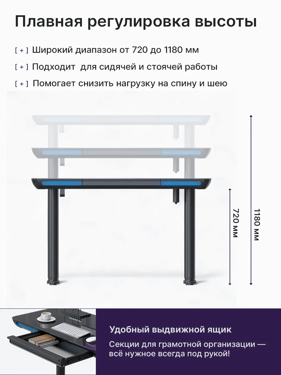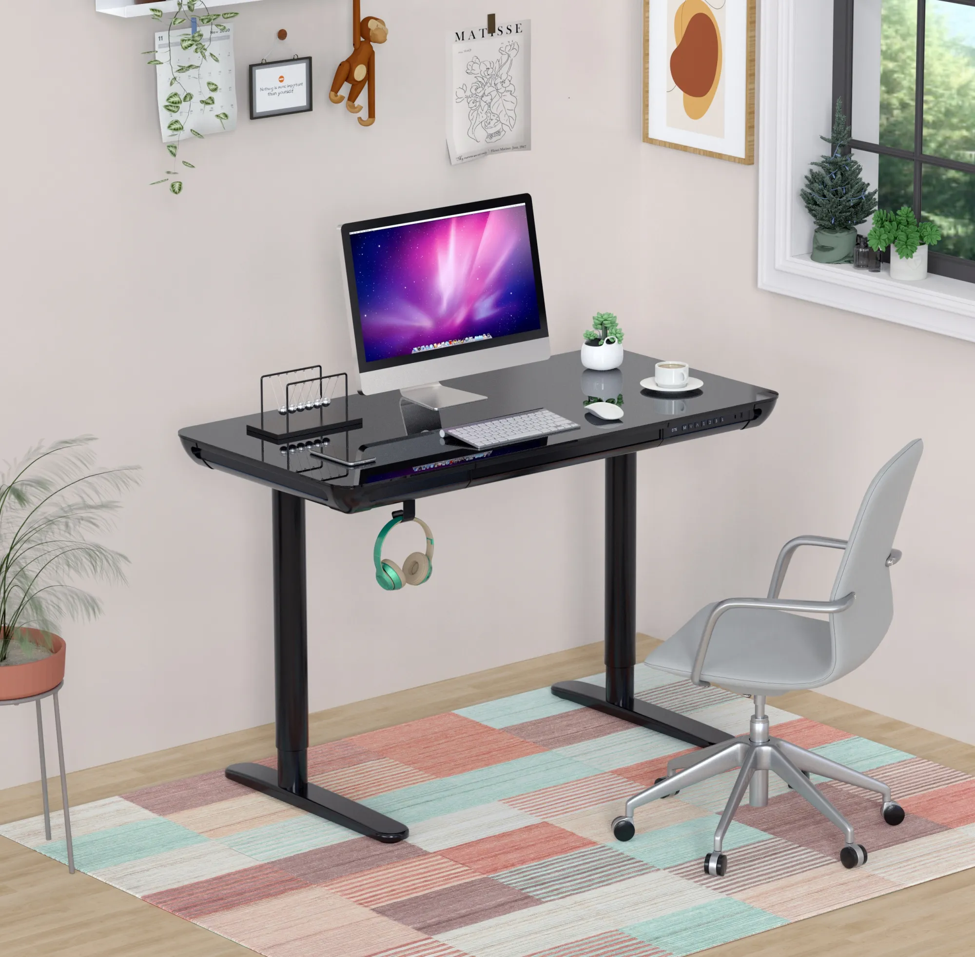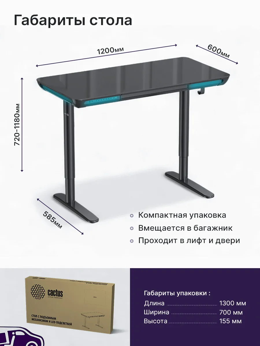 Стол для компьютера CS-EGD-BK-LED от CACTUS – это стильное и функциональное решение для современного офиса или домашнего кабинета. Его прямоугольная столешница из закаленного стекла придает модели элегантный вид, а прочная металлическая конструкция гарантирует надежность и долговечность. Стол оснащен удобным выдвижным ящиком для хранения необходимых мелочей, а также держателем для наушников, что добавляет комфорта во время работы. Главной особенностью модели является наличие подъемного механизма, позволяющего регулировать высоту стола под ваш рост, что обеспечивает эргономичное рабочее место и заботится о вашем здоровье. Кроме того, стол CS-EGD-BK-LED оснащен стильной подсветкой, создающей приятную атмосферу и подчеркивающую современный дизайн модели.