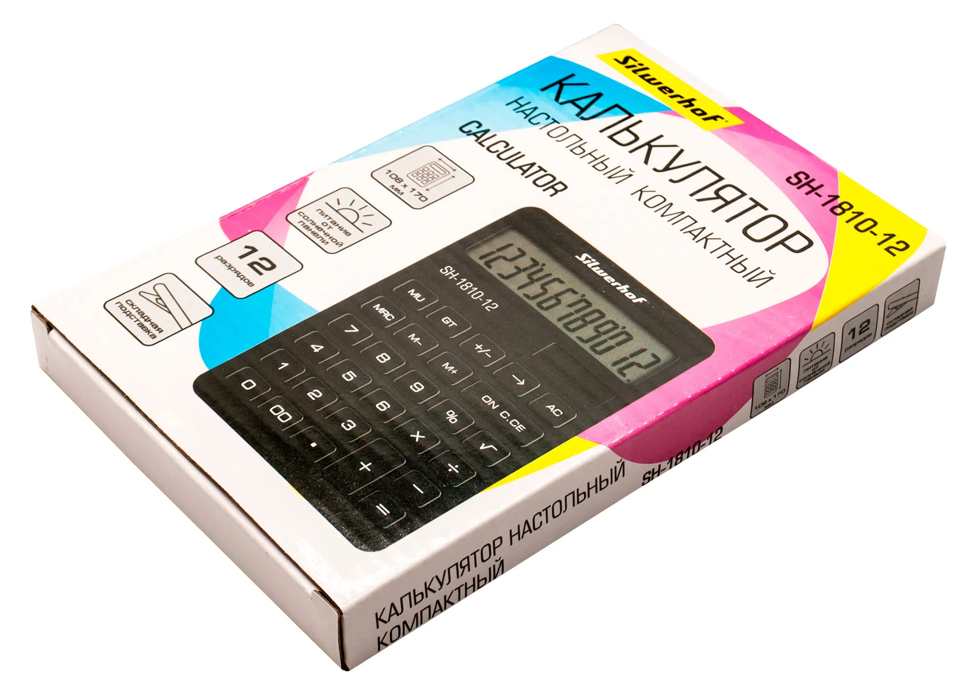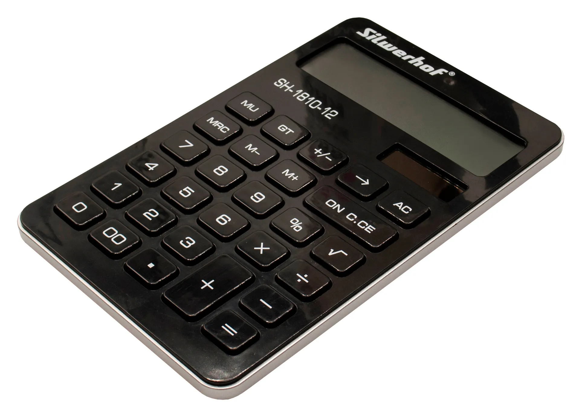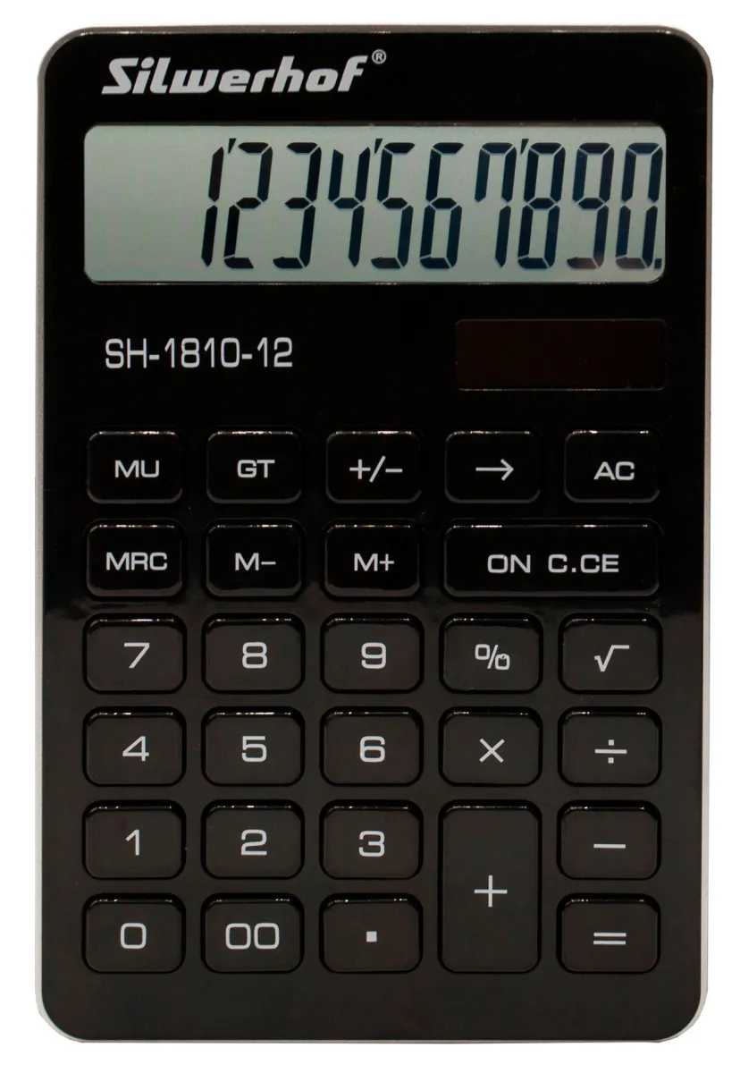 Калькулятор настольный Silwerhof SH-1810-12 — это компактное и функциональное устройство для выполнения арифметических операций. Он имеет 12 разрядов, что обеспечивает высокую точность расчётов.Чёрный цвет корпуса делает калькулятор стильным и универсальным, а его компактные размеры позволяют легко разместить его на рабочем столе. Калькулятор оснащён основными функциями для проведения расчётов, такими как сложение, вычитание, умножение и деление, а также возможностью вычисления процентов и квадратного корня. Silwerhof SH-1810-12 работает от солнечной батареи, что обеспечивает длительное время автономной работы. Это идеальный выбор для тех, кто ищет надёжный и функциональный калькулятор для повседневного использования.