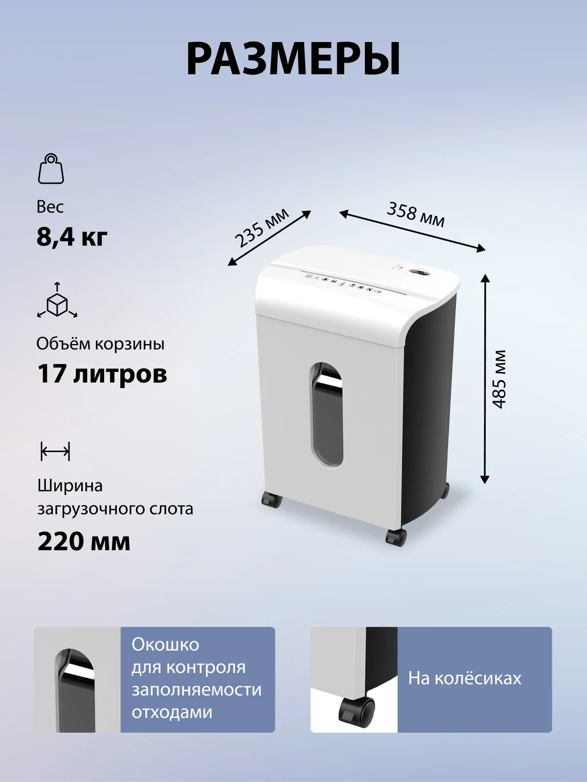 Благодаря низкому уровню шума и отсутствию запаха при работе, этот уничтожитель документов станет незаменимым помощником в вашем офисе.