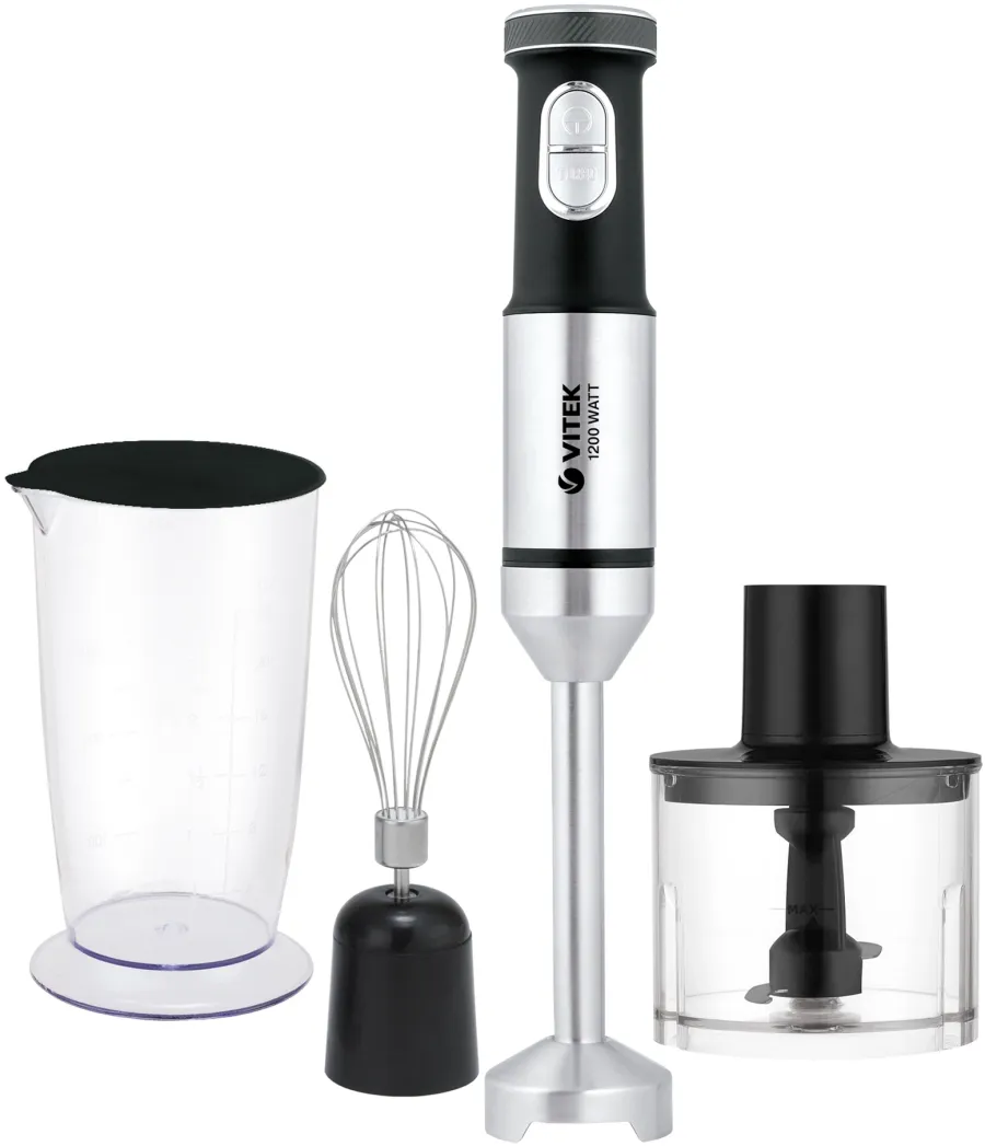 Блендер VITEK VT-1465 станет для вас отличным решением, если вы любите вкусно готовить, но хотите тратить на это меньше времени. Набор совмещает в себе все необходимые функции блендера, чоппера и миксера для идеальной обработки продуктов. В комплекте с блендером - чаша объемом 500 мл, а также стакан для смешивания объемом 700 мл, насадка-венчик для взбивания и резиновая крышка для стакана, помогающая сохранить свежесть приготовленного блюда. Материал погружной части выполнен из надежной нержавеющей стали. Справиться с особо твёрдыми продуктами вам поможет режим TURBO. Теперь сделать фарш, приготовить нежное пюре или крем-суп, взбить соус или крем – легко, если у вас есть блендер VT-1465! Купите погружной блендер VT-1465, и он станет не только незаменимым помощником в приготовлении различных блюд, но также и стильным аксессуаром на Вашей кухне.
