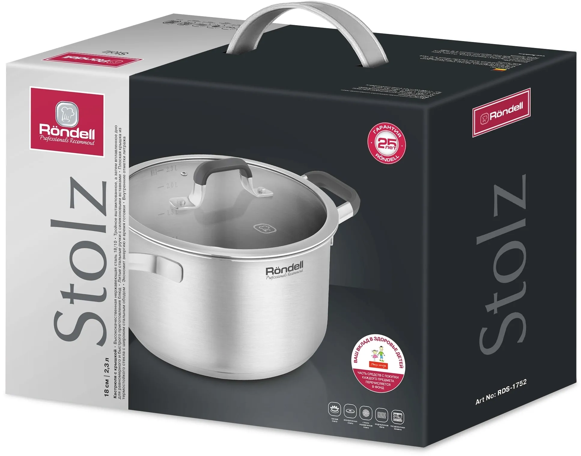 Название Stolz (с нем. «гордость») обусловлено выдающимися техническими характеристиками и эффектным дизайном. Кастрюли из пищевой нержавеющей стали имеют тройное вштампованное, а затем вплавленное дно. Оно обеспечивает быстрый равномерный прогрев всей поверхности и идеальное приготовление блюд.