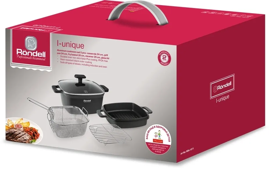 Коллекция I-unique — настоящая находка для продвинутых любителей кулинарии. Набор позволит приготовить множество блюд. Поместив решетку для запекания в кастрюлю, Вы сможете приготовить сочные стейки, рыбу или запечь овощи. Сковороду–гриль можно использовать и как посуду для томления блюд в духовке.