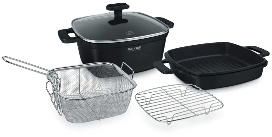 Универсальный набор подойдёт для любых типов плит, включая индукционные, а также для использования в духовом шкафу.