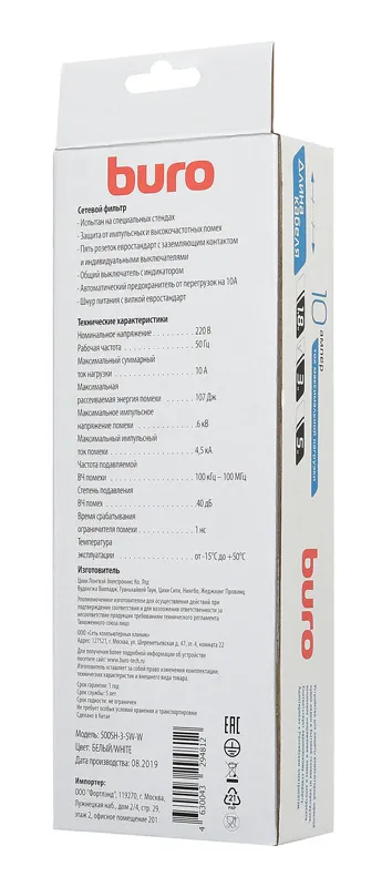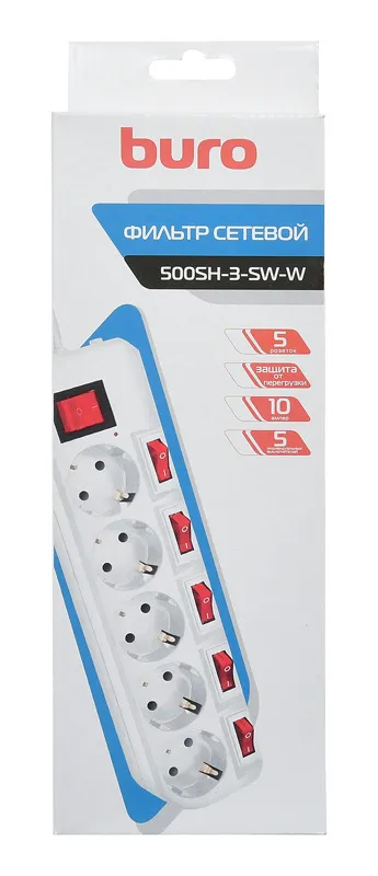 Сетевой фильтр Buro 500SH-3-SW-W — это устройство, которое защищает электроприборы от скачков напряжения, коротких замыканий и перегрузок. Фильтр оснащён пятью розетками типа F (евророзетка) и имеет длину кабеля 3 метра. Белый цвет корпуса фильтра позволяет ему гармонично вписаться в любой интерьер.