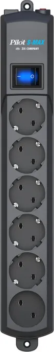 Сетевой фильтр S-MAX 3 м с 6 розетками — это надёжное устройство для защиты бытовой и офисной техники от перепадов напряжения, коротких замыканий, перегрузок и других проблем электросети. Благодаря длине кабеля 3 м и 6 розеткам стандарта евро (5 с заземлением и 1 без), этот фильтр обеспечивает удобство подключения различных устройств. Суммарная мощность подключаемой нагрузки соответствует максимально допустимой мощности для бытовой розетки 220В, номинальный ток - 16, частота сети-50 Гц. Схема защиты сетевого фильтра Pilot S-MAX включает ограничитель для защиты от импульсных скачков напряжения и грозовых разрядов, термопредохранитель для защиты от перегрева внутри корпуса, плавкий предохранитель для защиты от короткого замыкания.